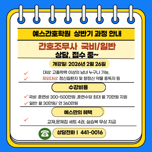 | 2026년도 상반기 간호조무사 자격취득 과정반 상담, 접수 중~~