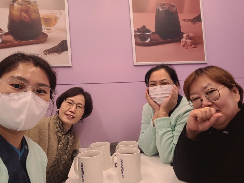 근처 청담한방병원에서 실습중인 세 분과 교통사고로 입원 치료중인 이*현 수강생, 각 부서에서 모두 열심히 적응중이라고~~
