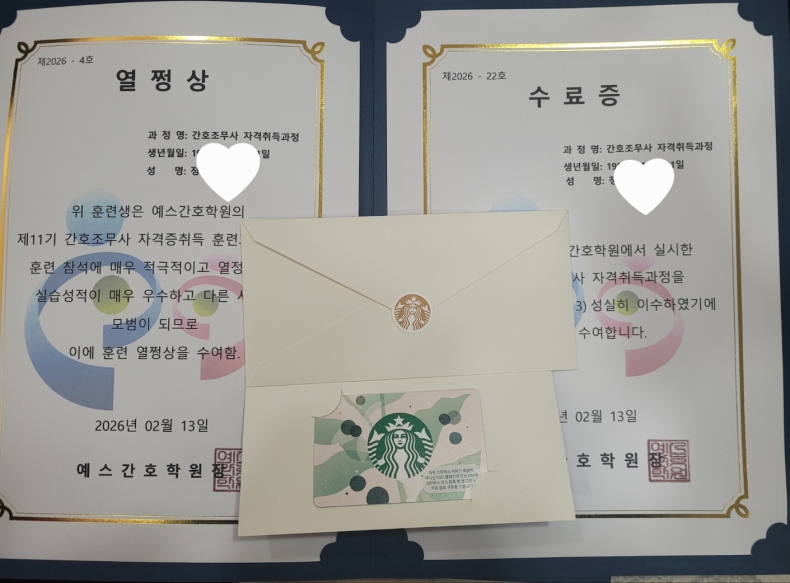 1년 동안 11기를 이끌어 오느라 수고한 대표 한*비, 공로상 받았어요...스벅 상품권!!