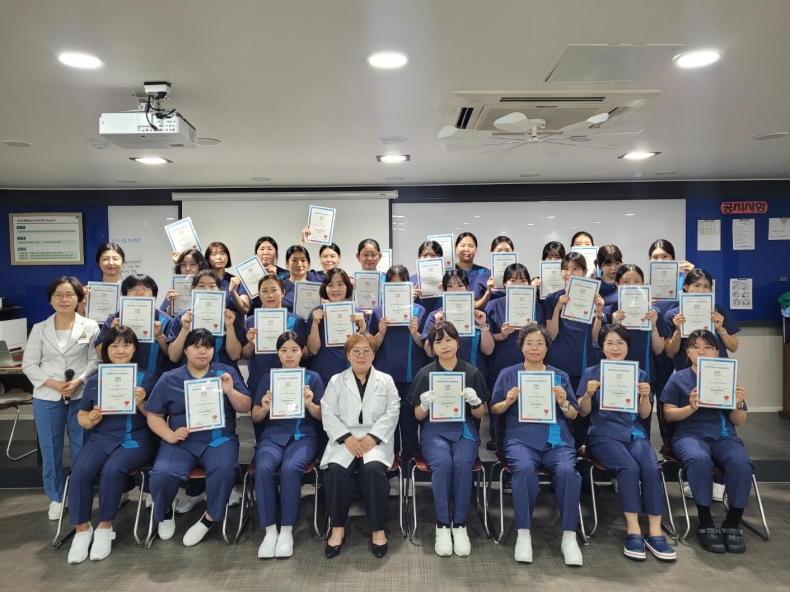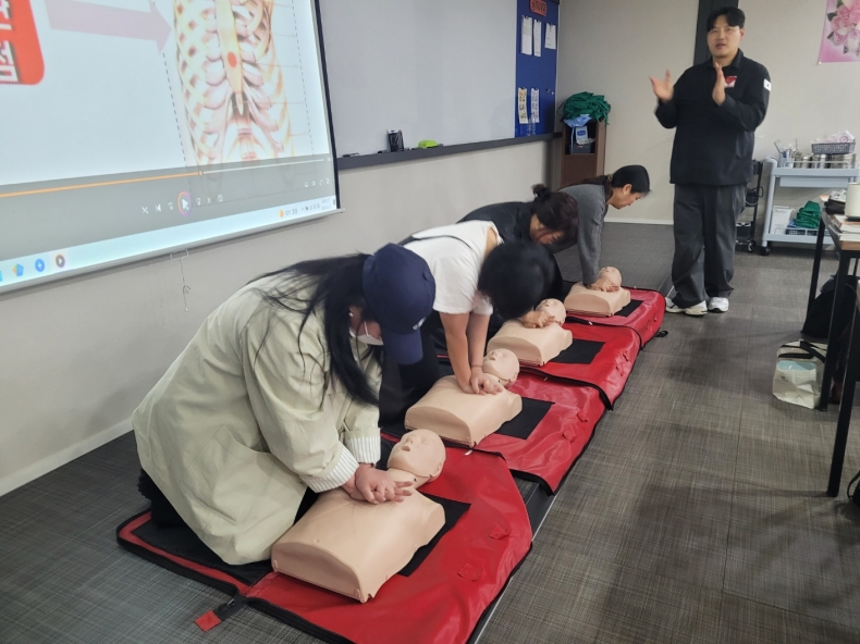 전문강사님으로부터 CPR교육을 받으며 가슴 압박도 직접 해보고 수료증을 받고