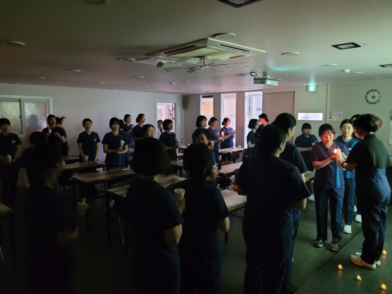 가운을 입고 촛불을 밝혀 나이팅게일 선서식을 하며