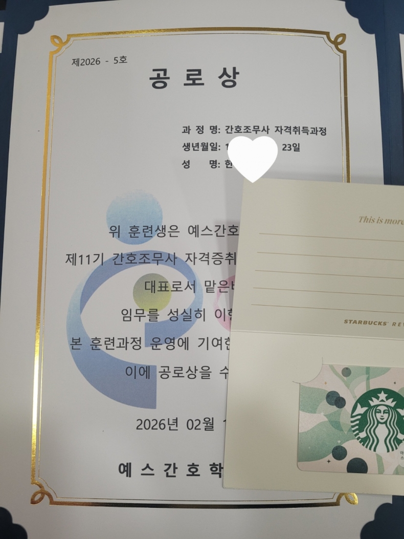 1년 동안 11기를 이끌어 오느라 수고한 대표 한*비, 공로상 받았어요...스벅 상품권!!